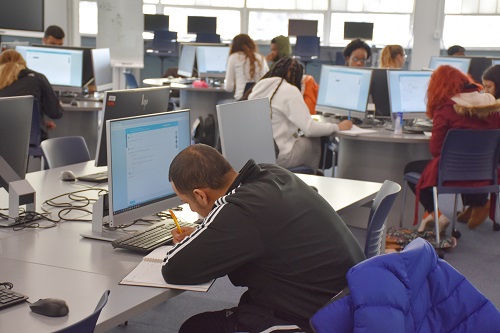 Students study in Triton College’s new iLaunch lab, which opened at the start of the spring 2018 semester