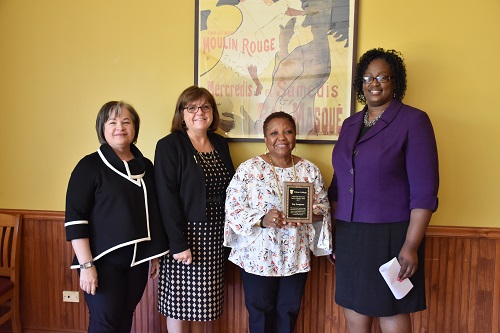 During an event on Sept. 28, retired Triton College administrator, Kay Langston, was honored for her contributions to the Adult Education Department during her career. Jennifer Foster, Illinois Community College Board deputy director of Adult Education and Workforce presented her a plaque commemorating her accomplishments.