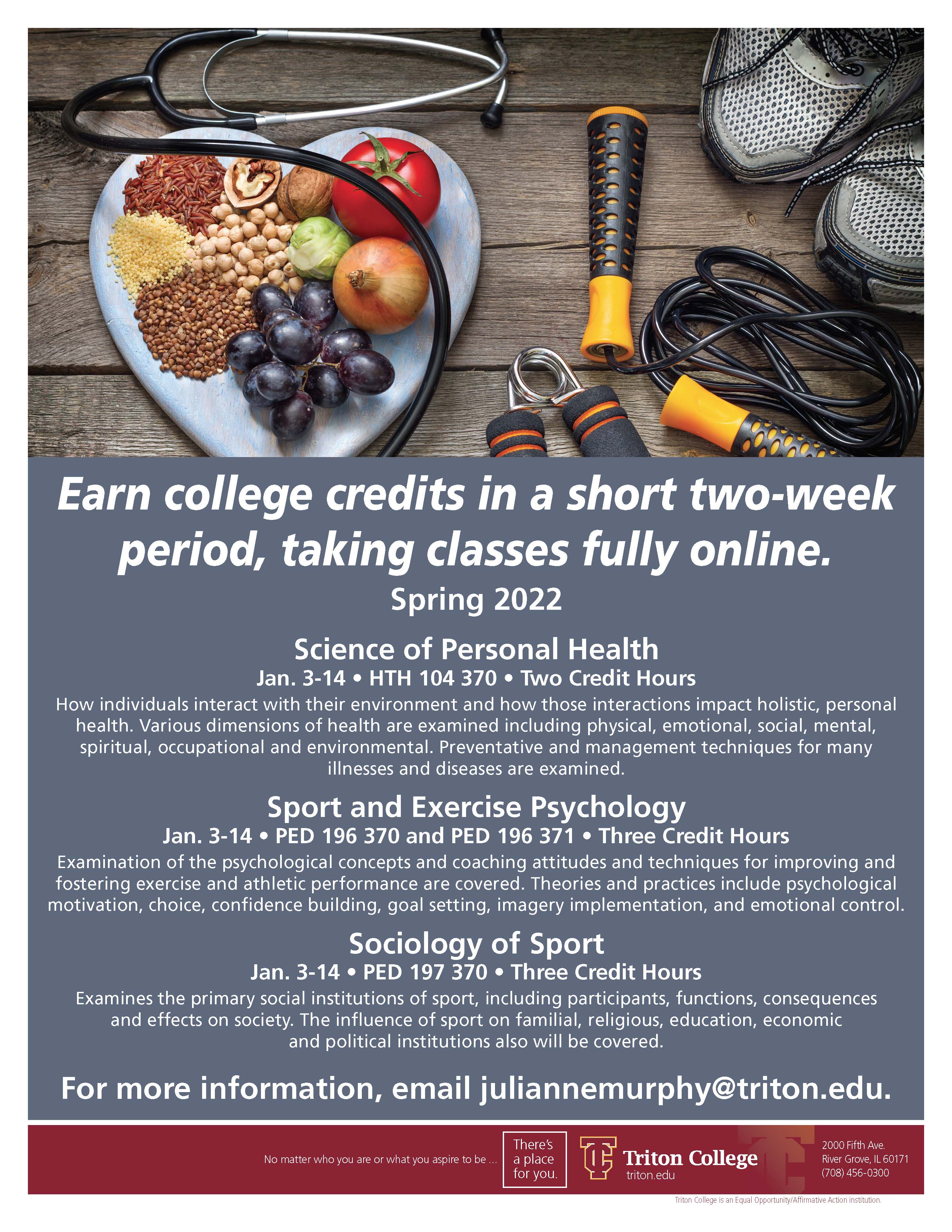 Students can register for three different Health, Sport and Exercise Science (HSES) short courses available during intersession. Each of the courses can be completed in two weeks fully online. The classes are scheduled Jan.3-14.