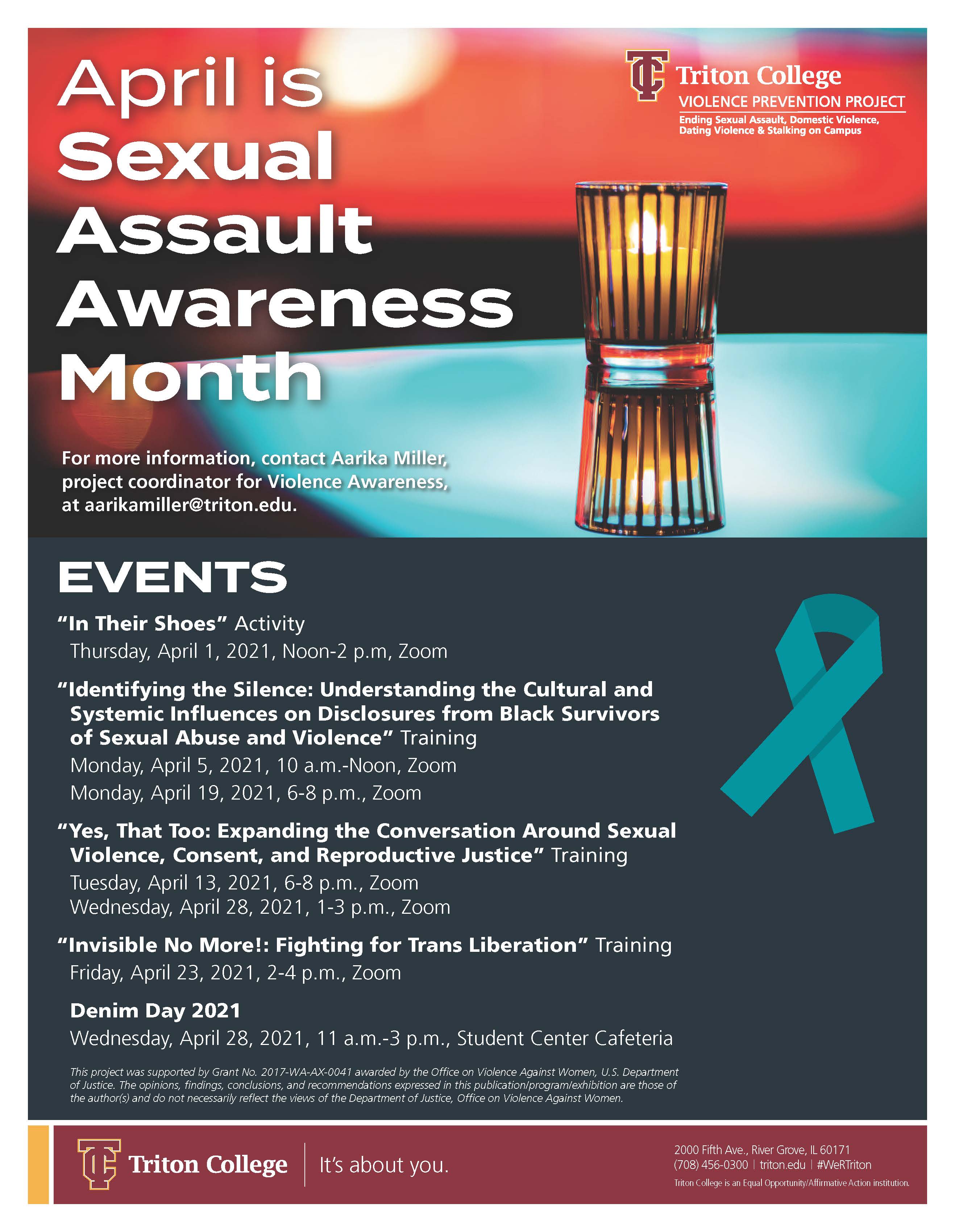 Starting on April 1 there are several workshops and activities throughout the month. Visit https://www.triton.edu/sex-assault to see the schedule of events.